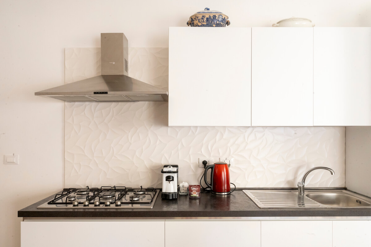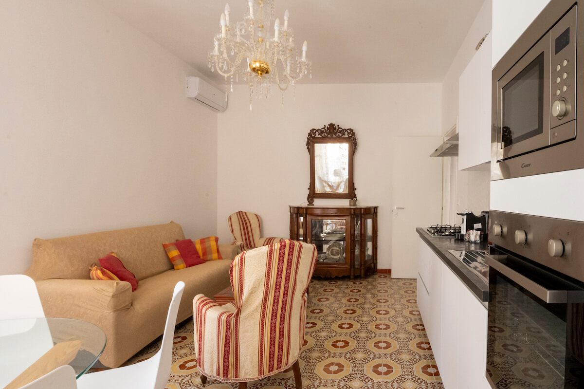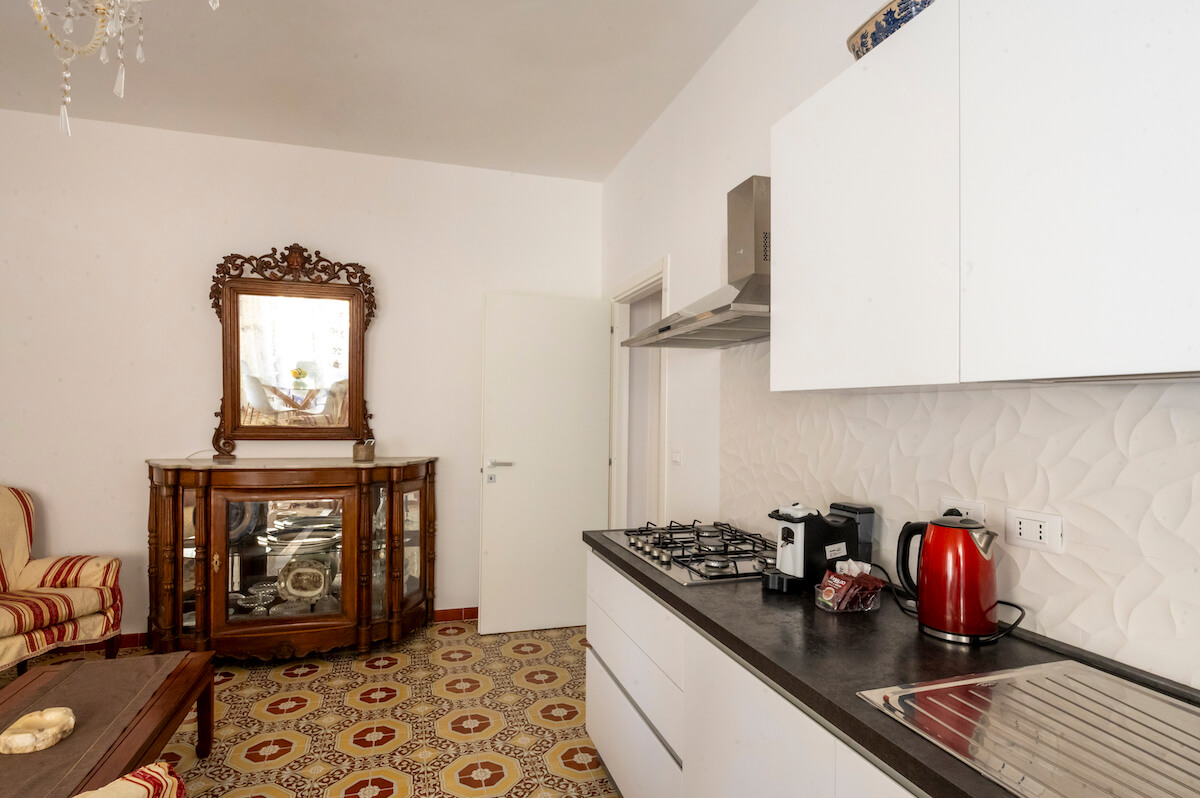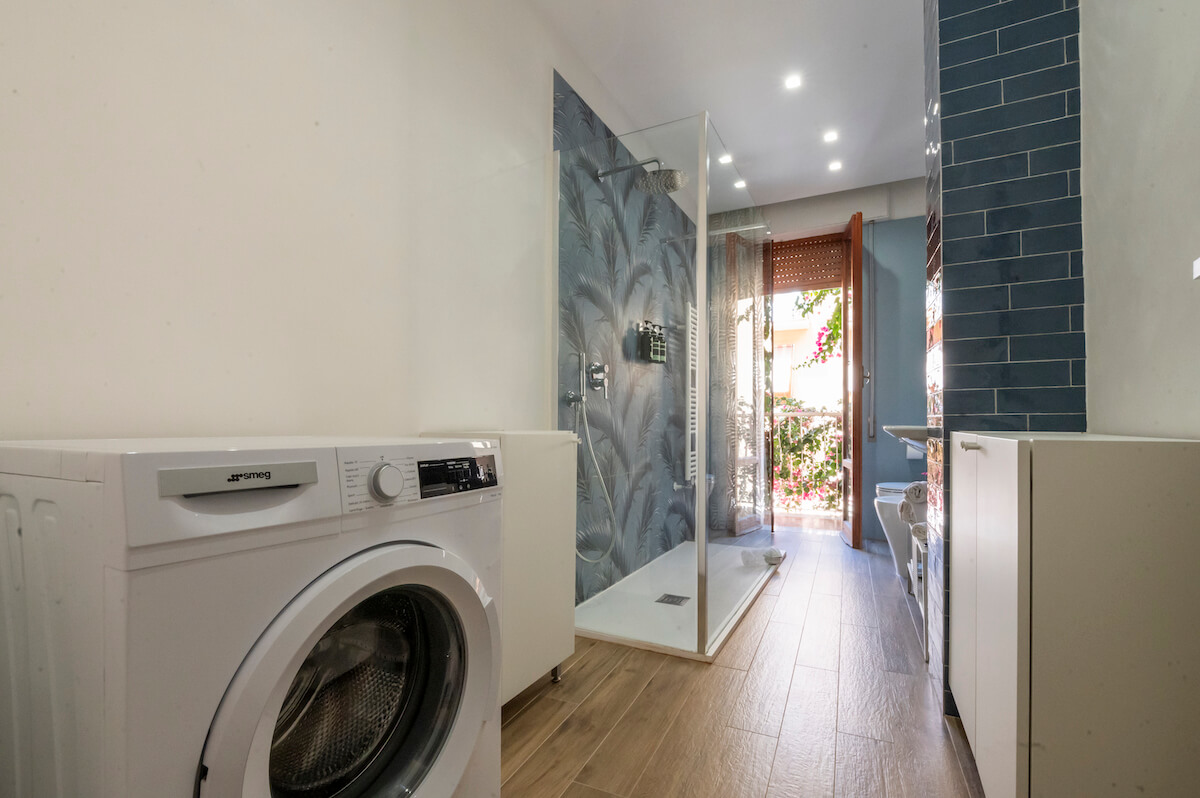 La cucina é dotata di tutti gli utensili per la cottura e di una lavatrice.L’appartamento è dotato di bagno con doccia, wc, bidet, lavabo.
